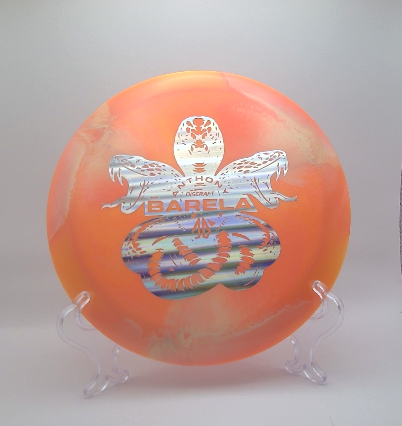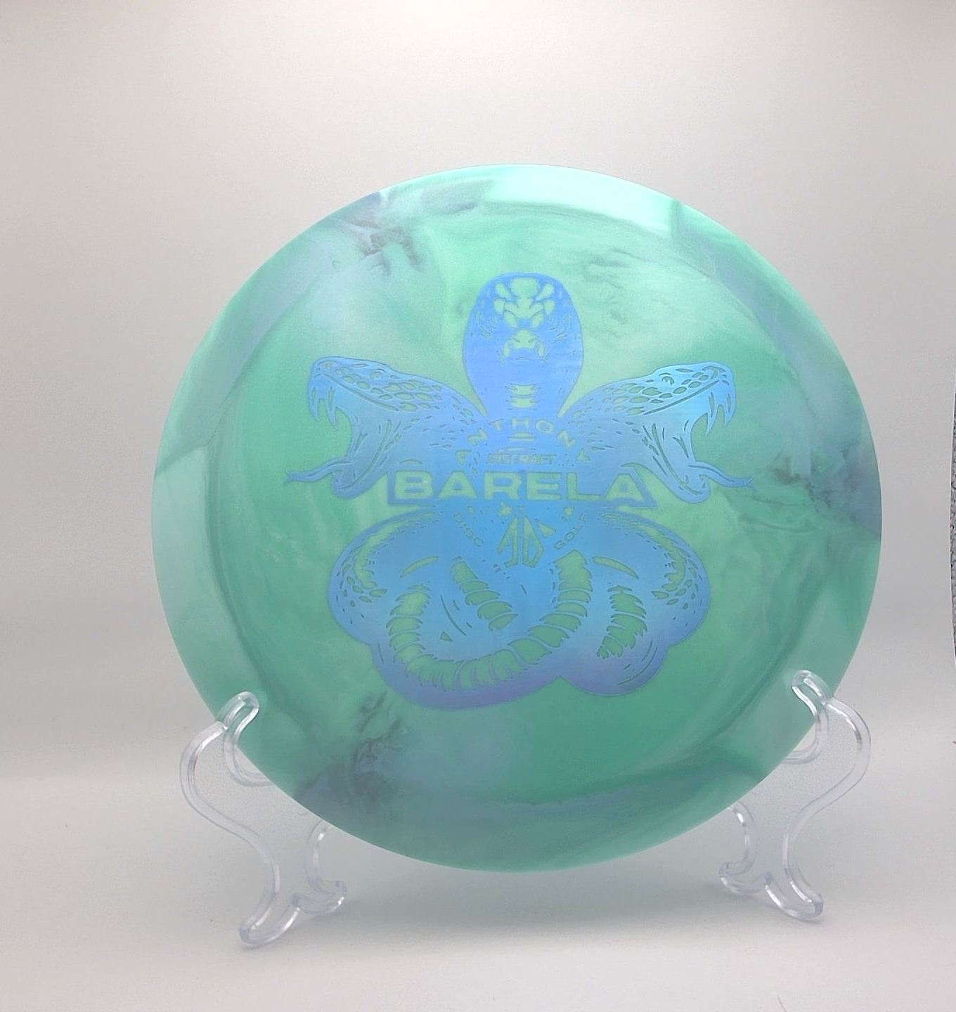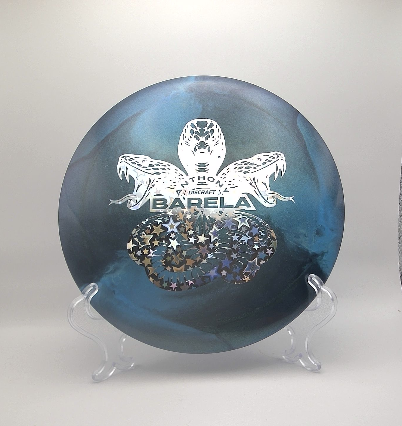 The Venom, a disc known for its reliable performance and trusted by Barela himself, makes this a must-have for any serious player or collector. Its exceptional design combines aesthetic appeal with championship-grade functionality, making it a standout piece in any disc golf arsenal.