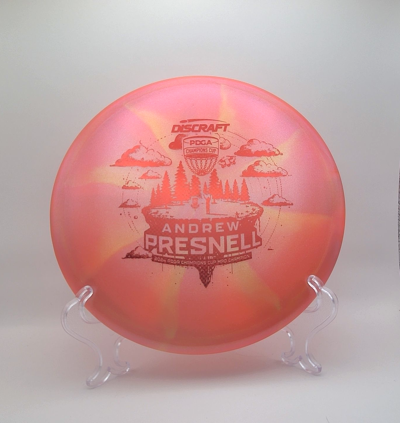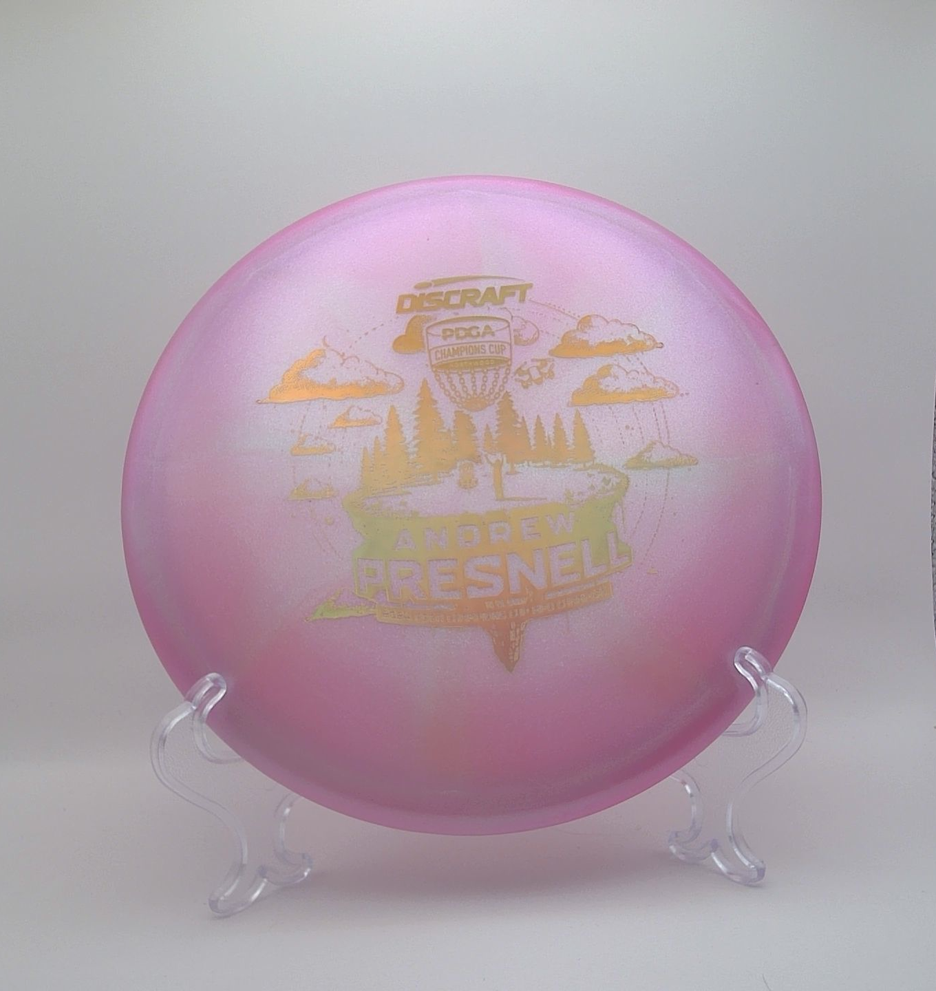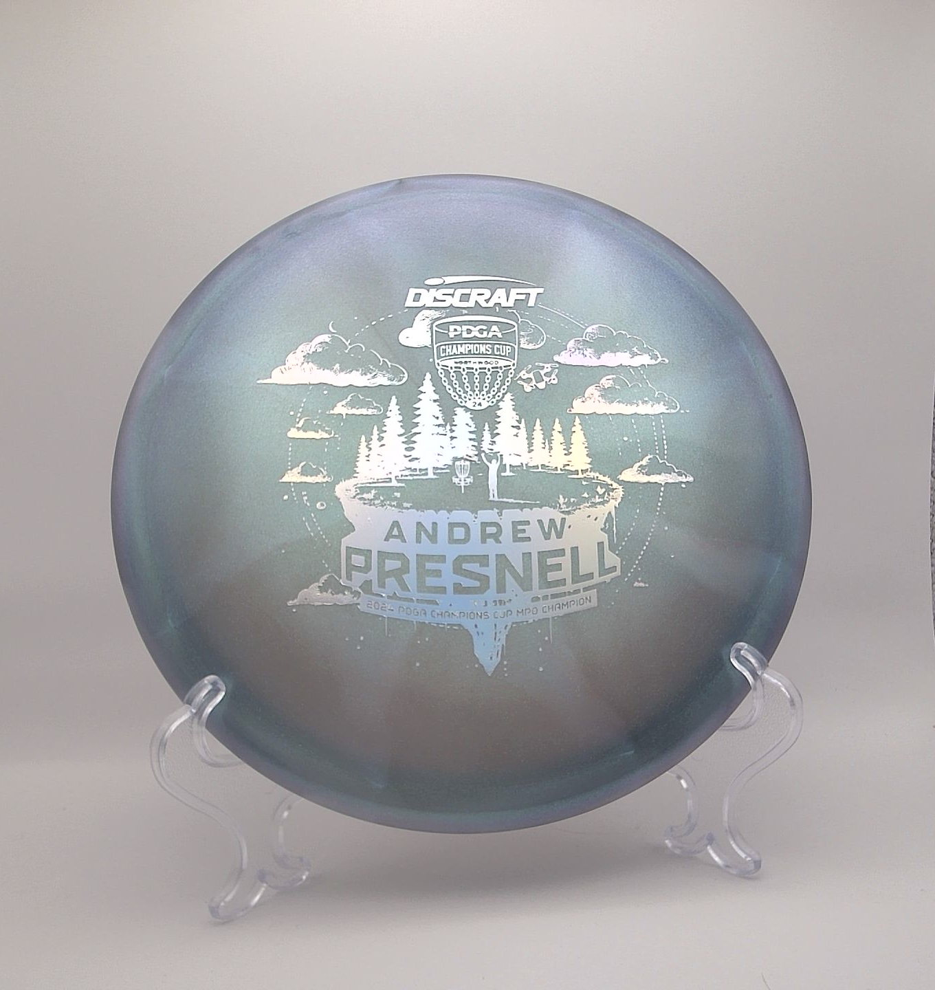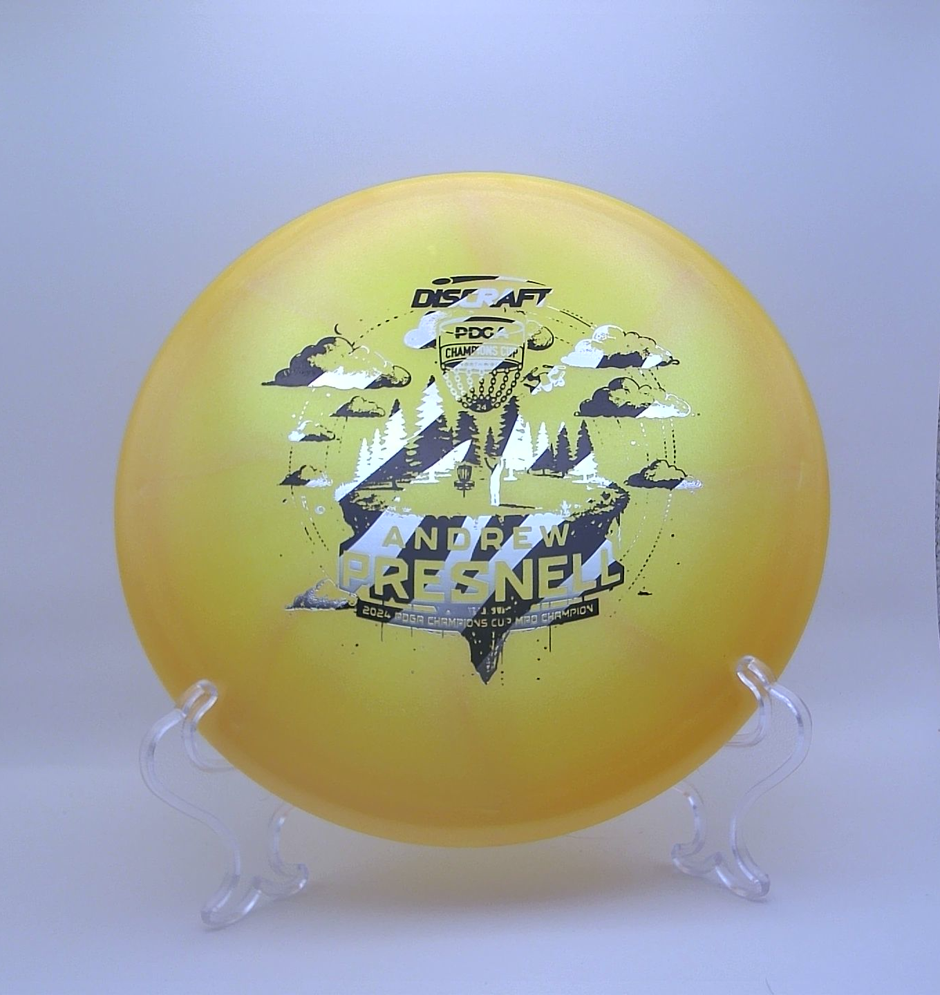 In celebration of Andrew Presnell’s remarkable first PDGA Major victory, we proudly present the Champions Cup Drone! This disc is not only a symbol of Presnell’s elite skills but also a tribute to his journey with Discraft as the Drone was his previous Tour Series disc during his time on the Elite Team.