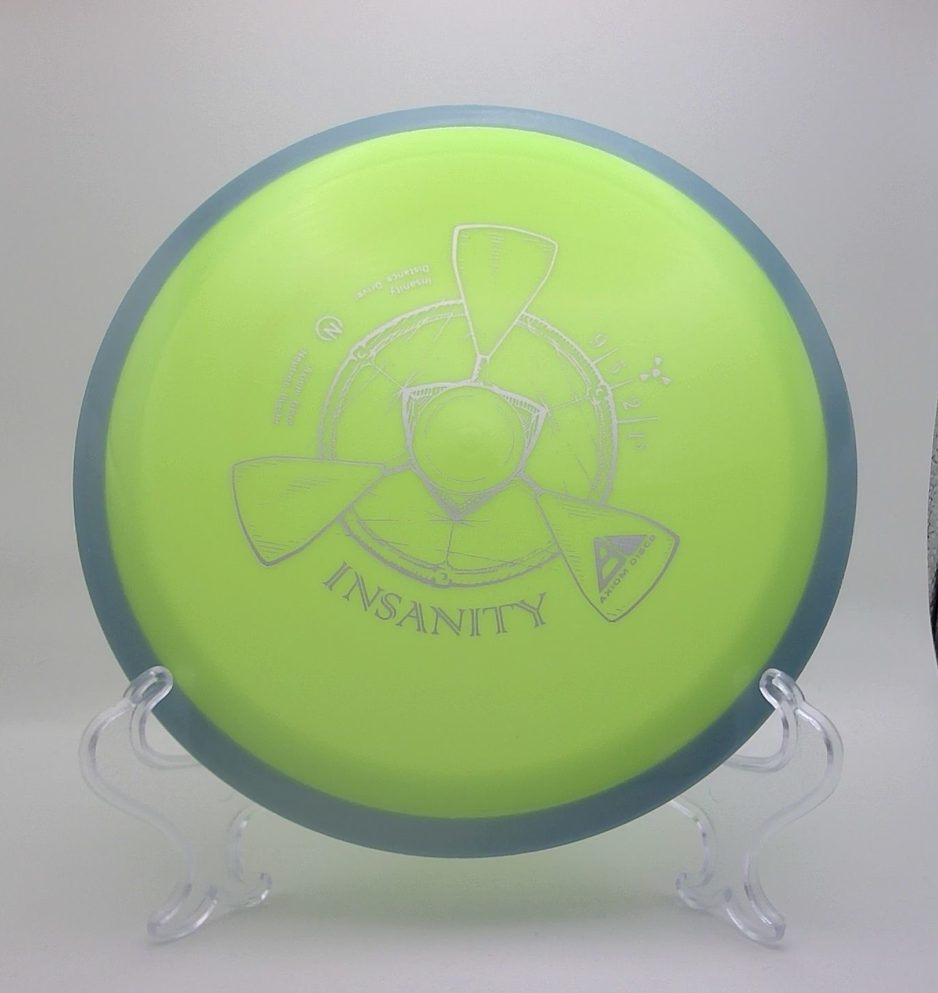 The Insanity is best described as a worn-in MVP Inertia, with slightly more high-speed turn and a diminished fade. For average power throwers, the Insanity will be remarkably straight, while high power throwers can execute precise flip and turnover lines with ease. Whether you’re looking for that sweet-spot worn disc flight, or you’re looking to achieve bigger Inertia lines with less power, give Insanity a shot.