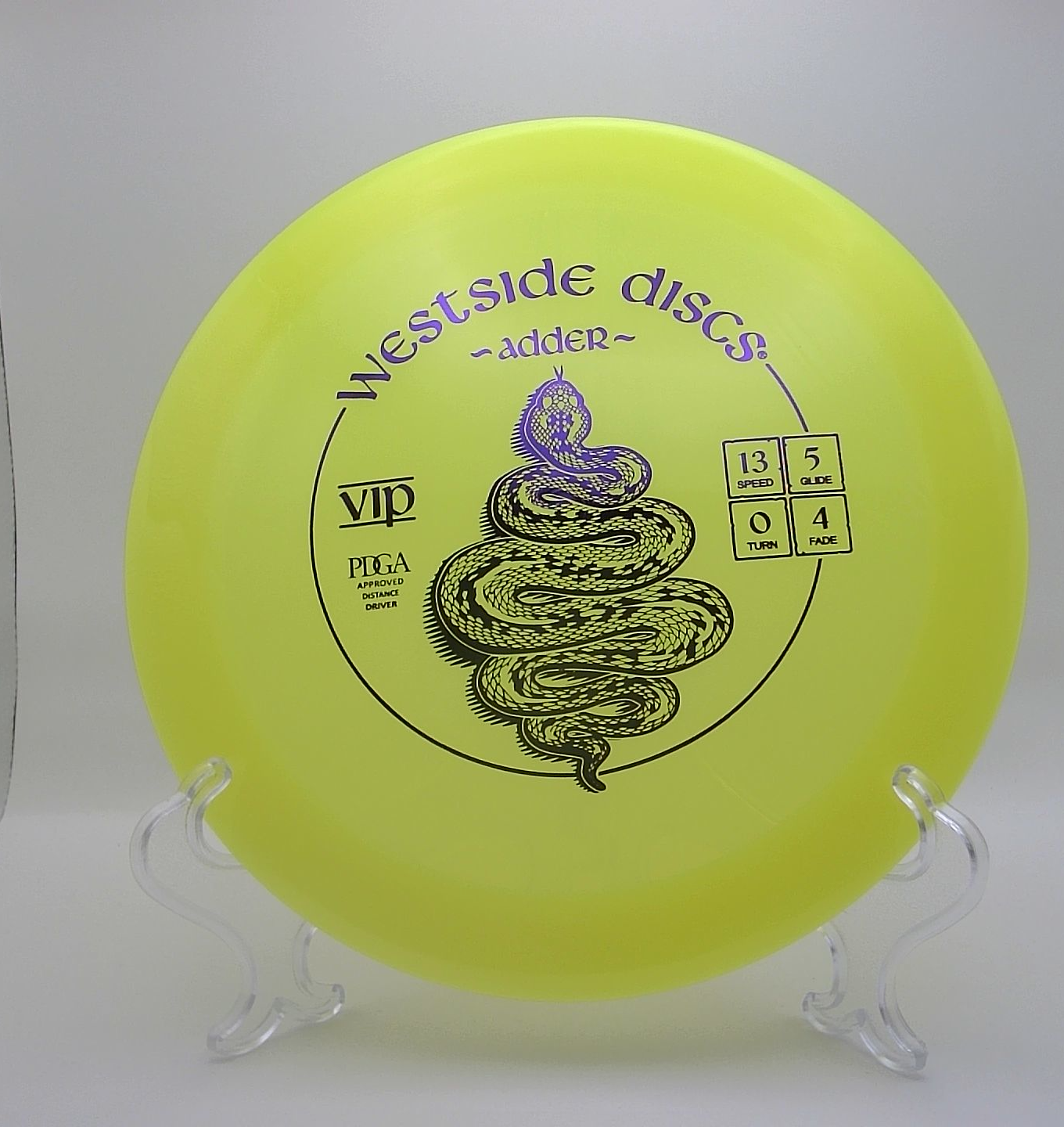 The Adder is ready to bail disc golfers out of the windiest of conditions. With high speed and a pop top giving good glide, only the biggest arms will have a chance to make this disc turn over. For everyone else, it will be a very useable utility disc for when you need a distinct fade with speed through the flightpath.